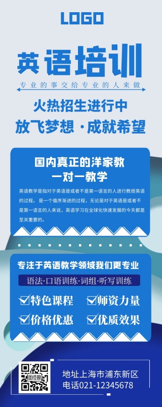 蓝色简约大气英语培训宣传营销长图
