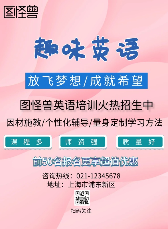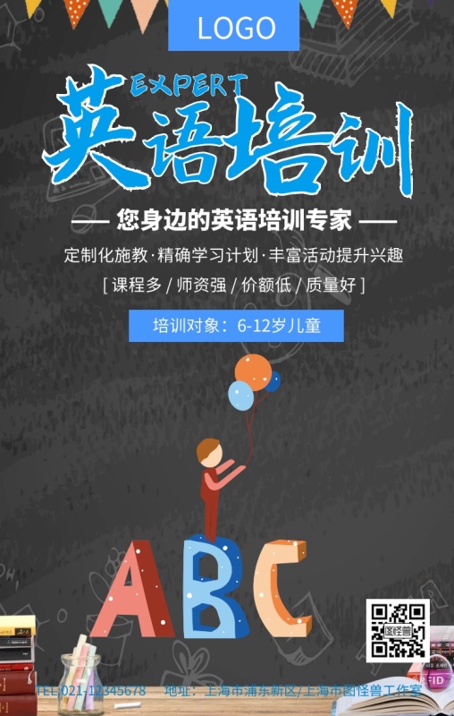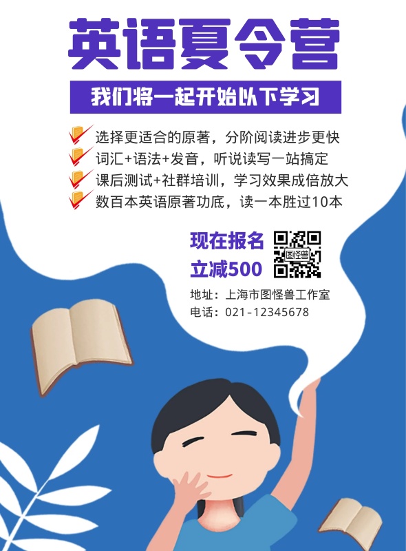 蓝色简约英语培训海报设计