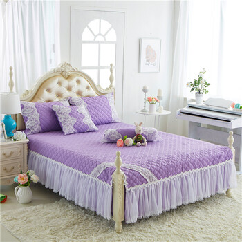 浪漫白色夹棉加厚衍缝纱棉床裙\/床罩床单