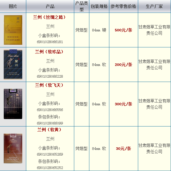 兰州烟价格表和图片 十款兰州烟经典款式价格