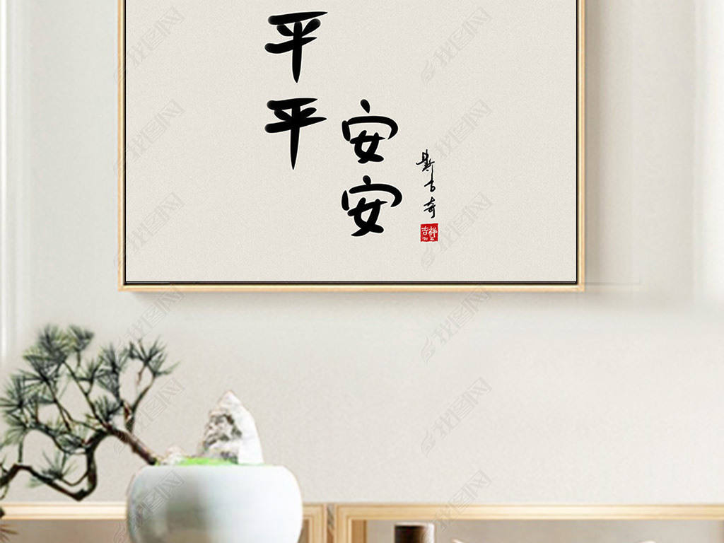 简约民俗寓意新中式水墨手绘平平安安装饰画