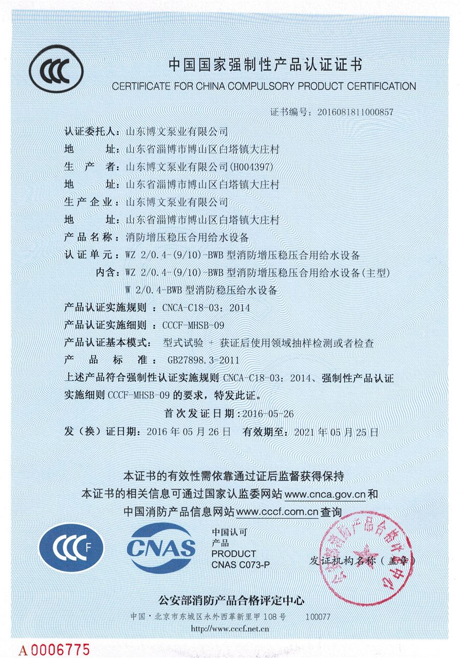 消防泵CCCF认证与2015年9月前的区别