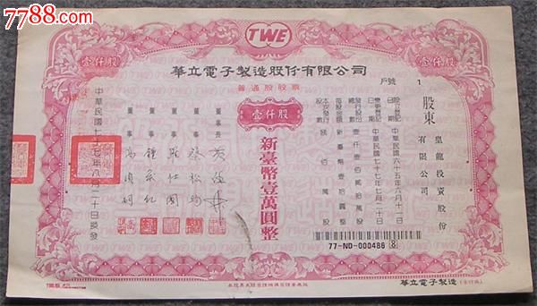 民国77年.新台币壹万圆整股票-se