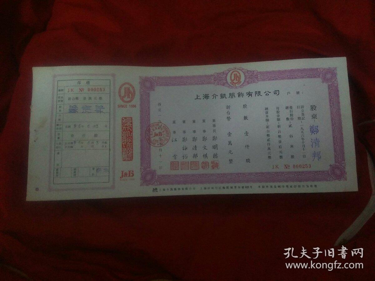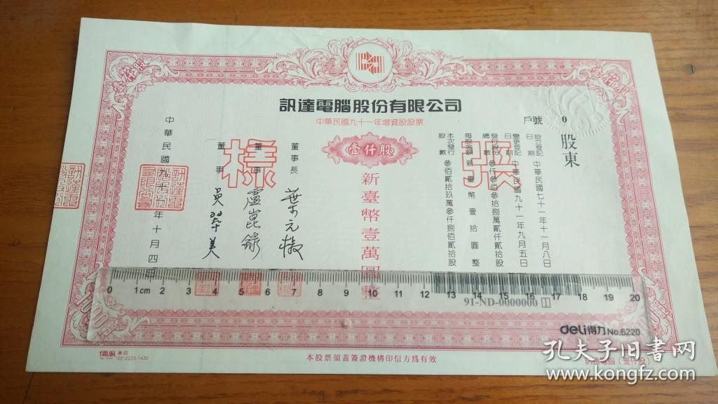 公司股票新台币一万元带水印防伪【票样】