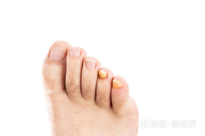 男性脚趾甲与真菌感染分离的白色背景和