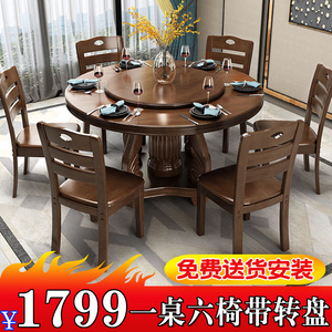 饭店酒店大圆桌餐桌圆桌面板清仓带转盘实木折叠组合10\/15人家用牧鹰酒店