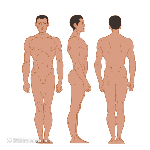 男性人体结构三视图