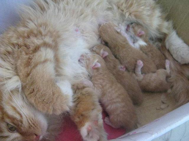 母猫3天产5只小猫4只成活 长产程让人称奇