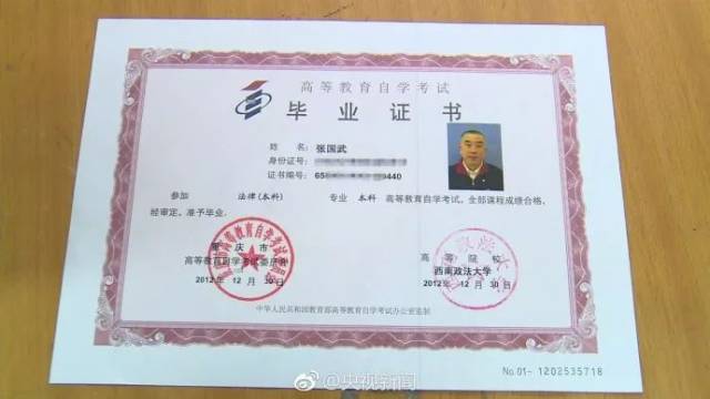 退休教师领到了西南政法大学的自考毕业证