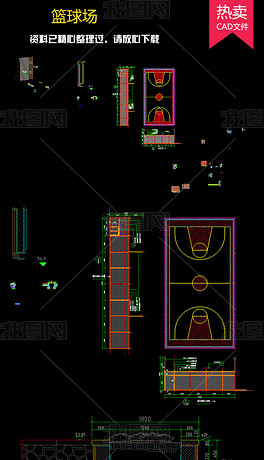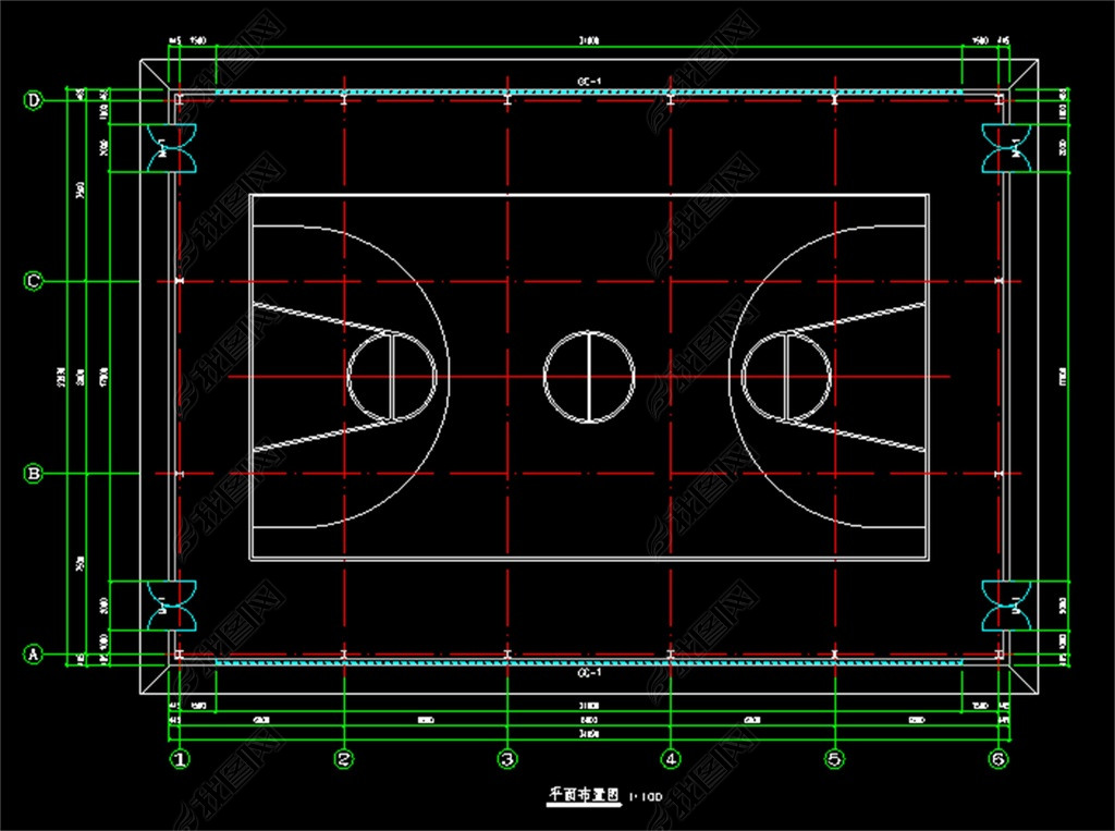 现代风格简单的篮球场大样图设计cad图[Basketball drawing CAD design simple modern style]