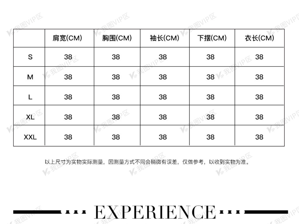服装尺码表模版图片