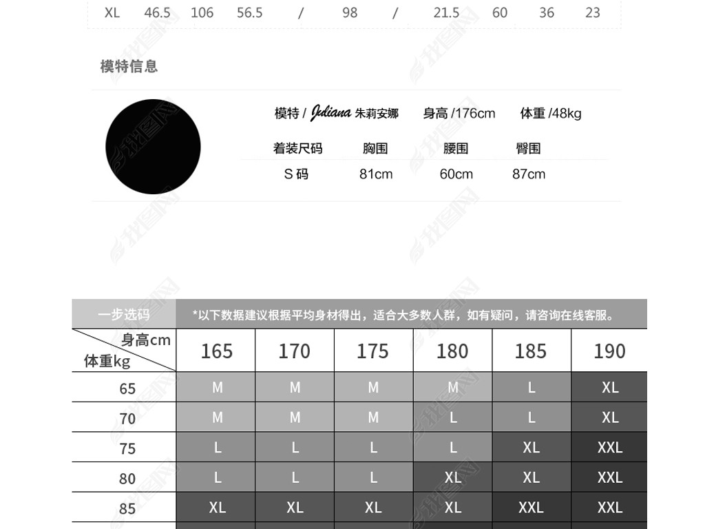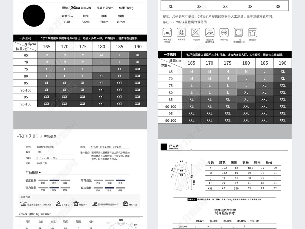 服装尺码表材质表模特参数