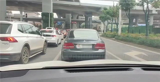 15万的大众逆向闯红灯,车牌是白底黑字,
