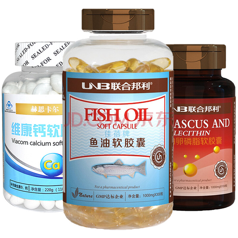 联合邦利 鱼油300粒\/瓶 红曲卵磷脂300粒\/瓶 维康D钙200粒\/瓶 组合装
