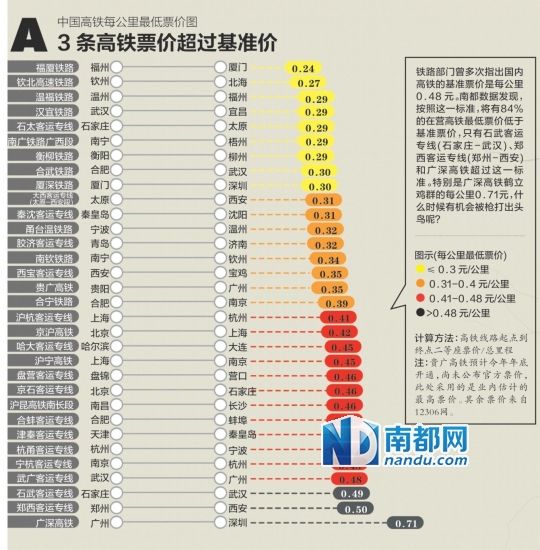 高铁贵贱图谱:广深等3条高铁票价超基准价