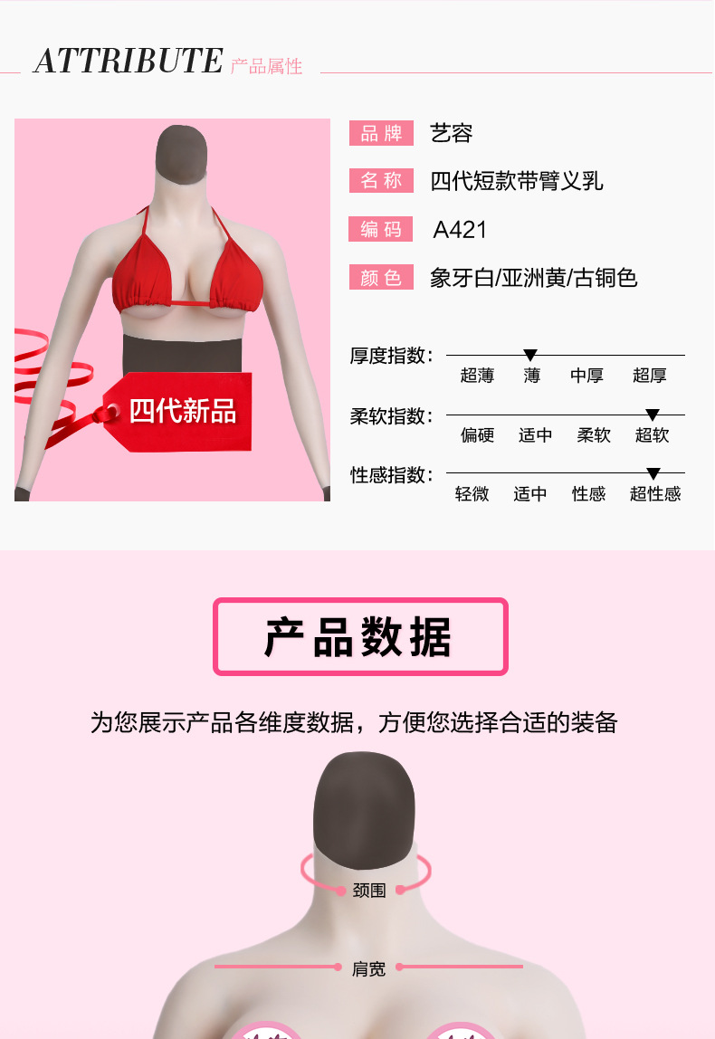 艺容定制批发CD变装义乳 伪娘连体硅胶