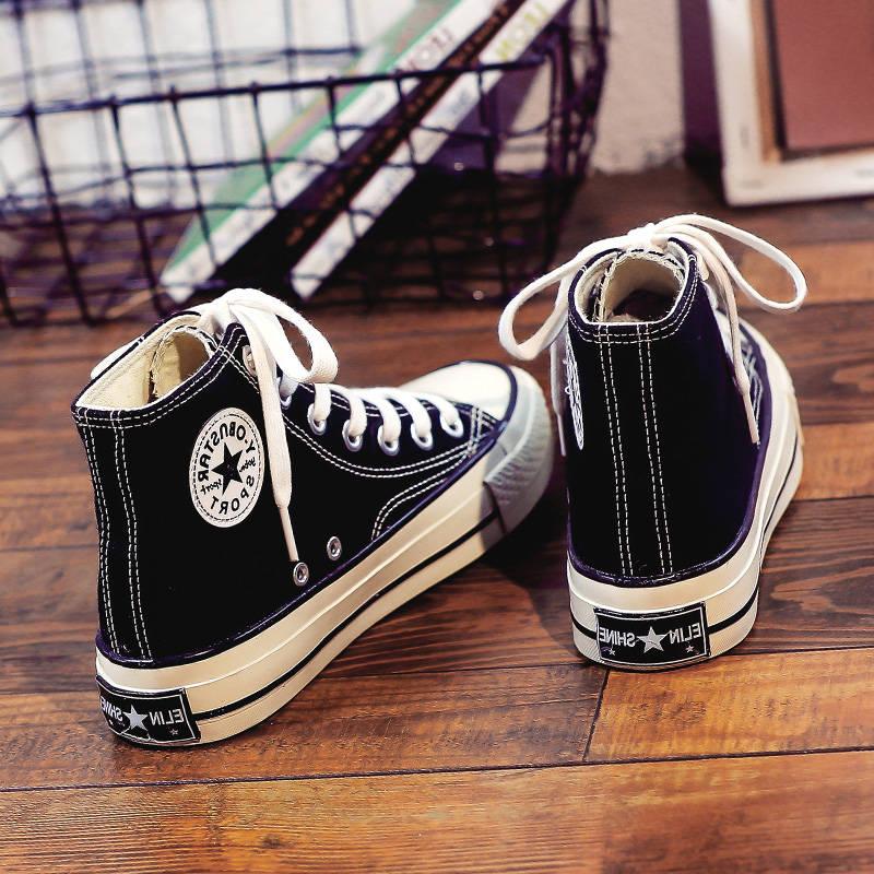 匡威经典款黑色三星标高帮帆布鞋1970s