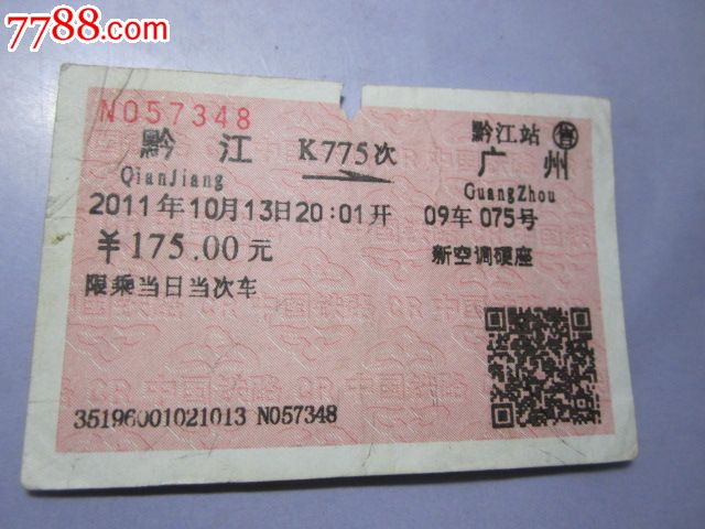 黔江-K775次-广州_火车票_京西纸品专卖