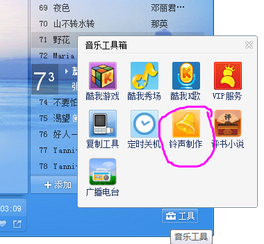 答:在我的社区里(在最上面的图标)点开后左边条形标题了会有个铃声制作。点那个就好了 我的社区—应用—酷我铃声制作工具