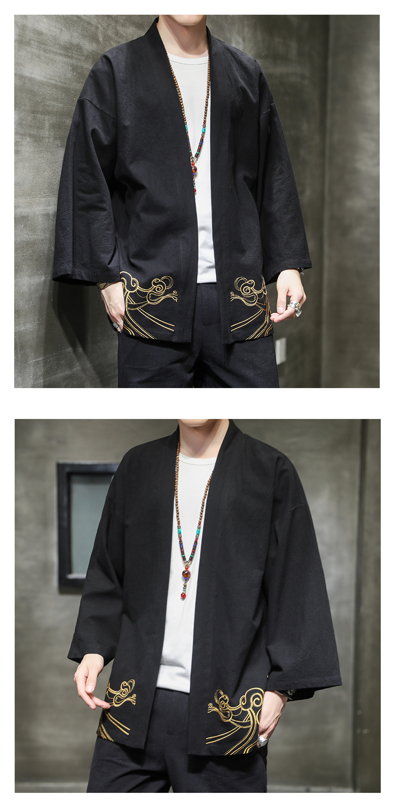 秋冬中国风男装棉亚麻汉服男唐装道袍和服