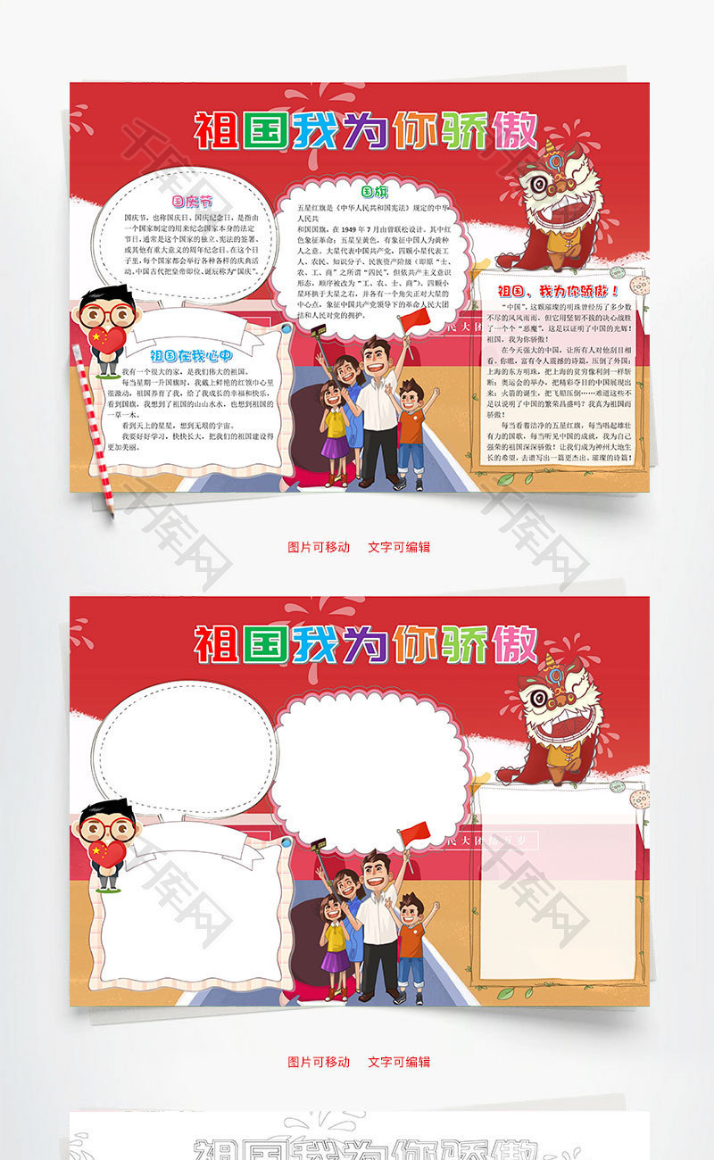 祖国我我为你骄傲640A4国庆节电子小报成品,欢度国庆手抄报模板,歌颂祖国妈妈电子简报小学生传统节日板报