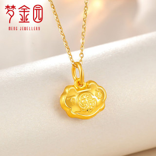 【梦金园吊坠】梦金园 长命锁黄金吊坠 约