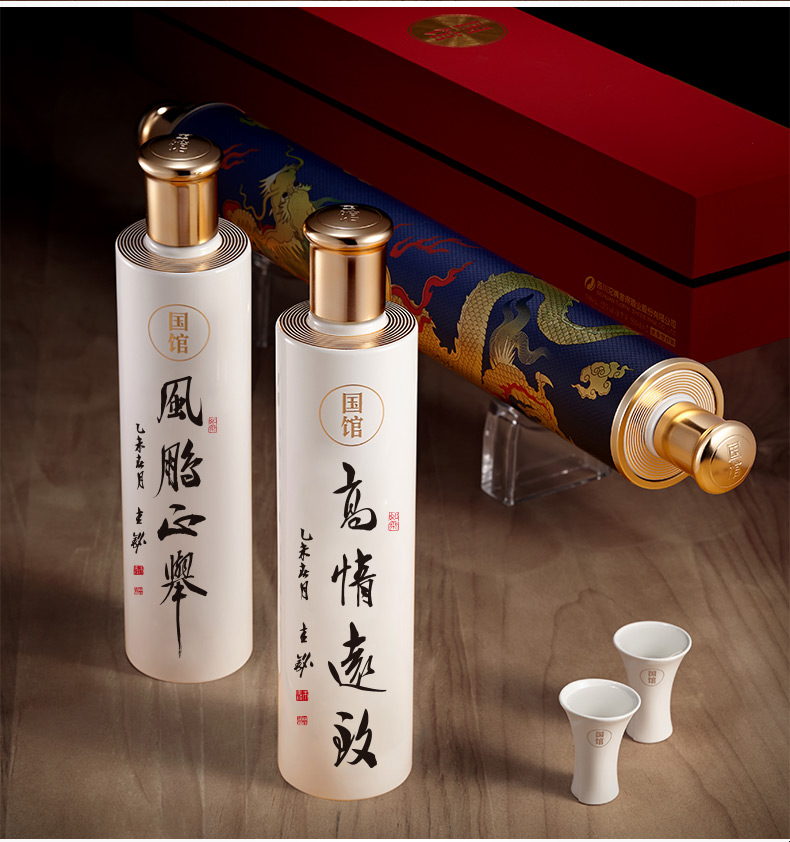 国馆酒 浓香型52度白酒礼盒装 中国风婚宴酒礼品酒500ml*2瓶装 B款 风鹏正举丨高情远致