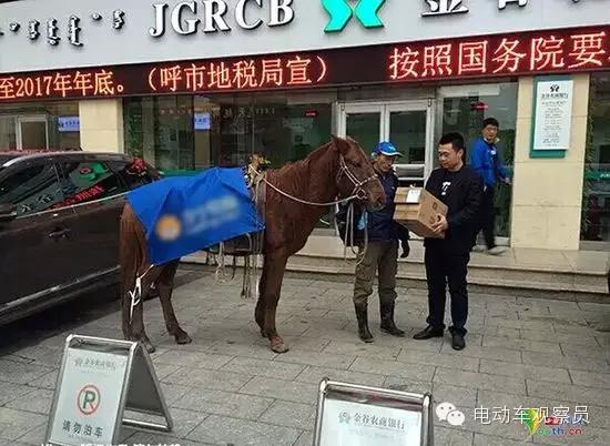 围观!呼和浩特电动车禁行 快递小哥骑马送