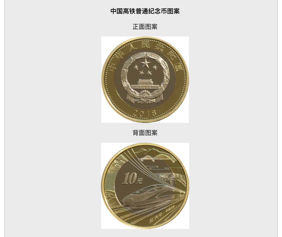 简介:中国高铁普通纪念币是中国人民银行发行的纪念币,正面图案为国徽,其上方刊"中华人民共和国"国名,下方刊