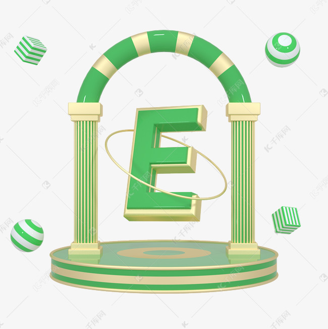 C4D绿金色大气质感舞台创意英文字母E