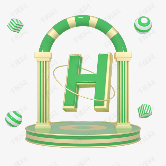 C4D绿金色大气质感舞台创意英文字母H