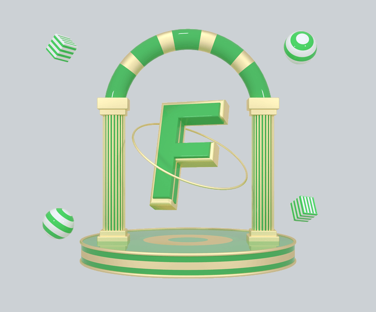 C4D绿金色大气质感舞台创意英文字母F