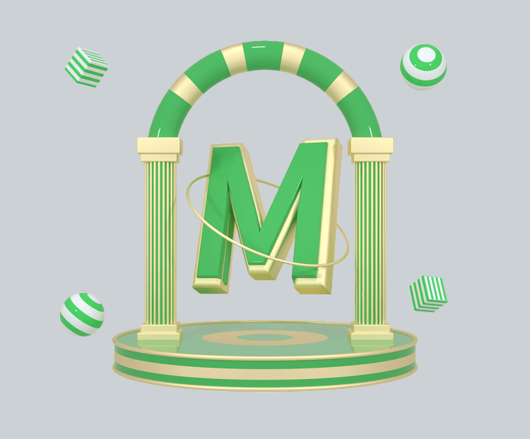 C4D绿金色大气质感舞台创意英文字母M