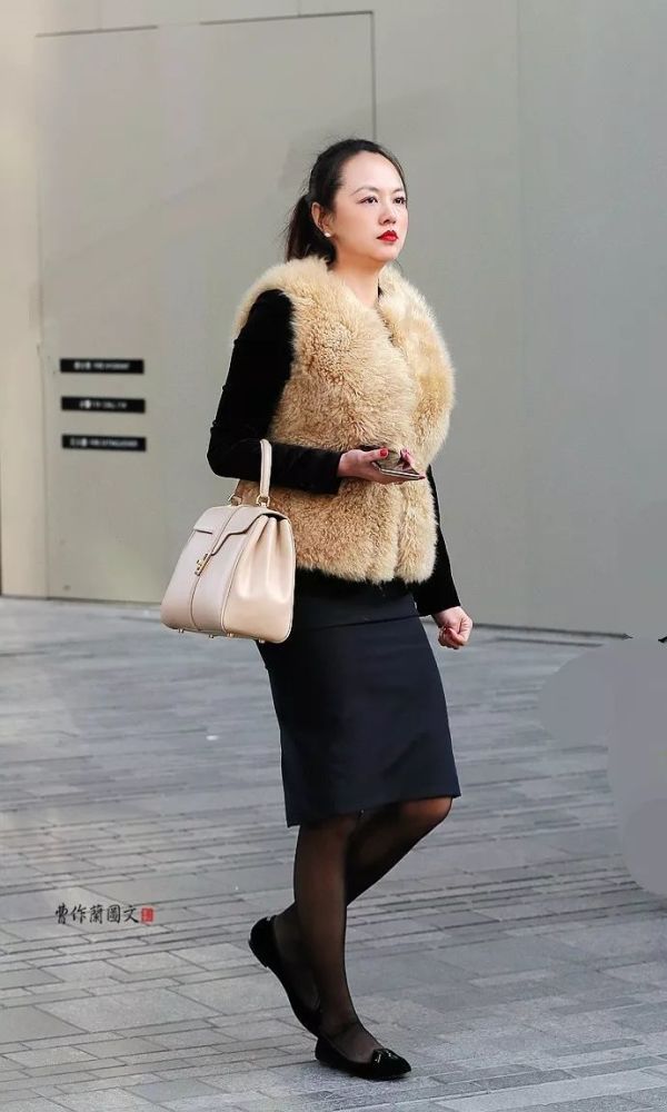 街拍:穿黑色丝袜的美女,衣服也更加讲究