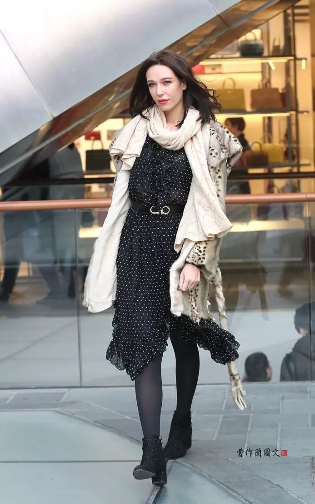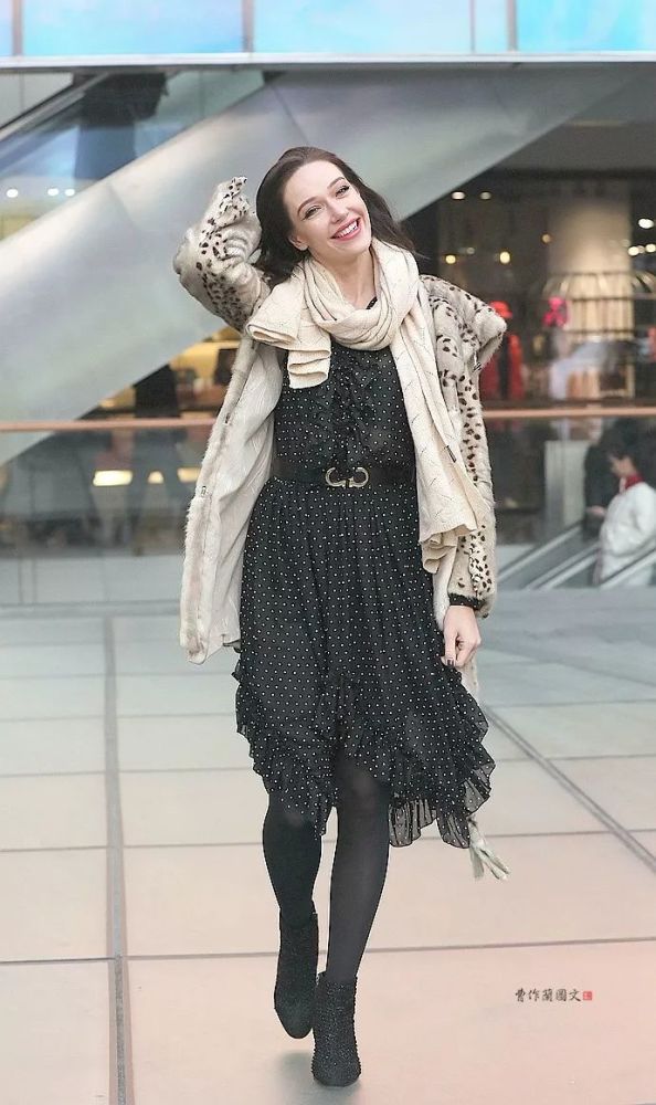 街拍:这样的马尾辫,连衣裙、黑丝袜和豹纹