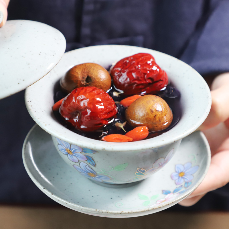 陇萃堂黑枸杞三泡台八宝茶盖碗茶 三泡台黑枸杞三炮台450g
