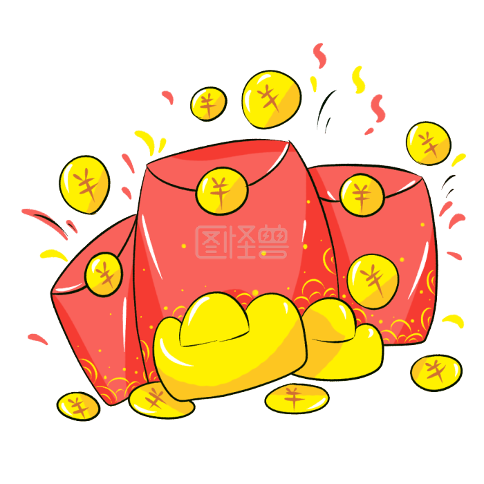 财神到财神到,迎财神发红包,儿童节日简笔画