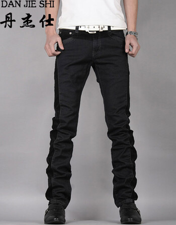 黑牛仔裤男装直筒修身潮裤牛仔裤男黑色 .