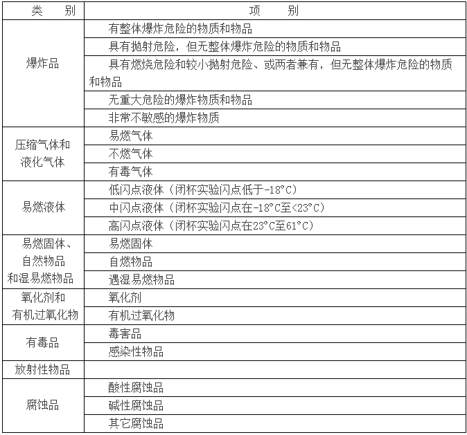 危险化学品分类表