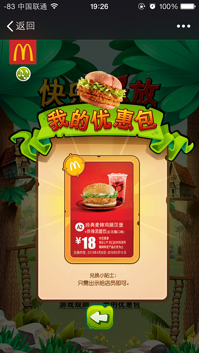 #麦当劳# 游戏后领取#优惠券# 活动弹窗浮层