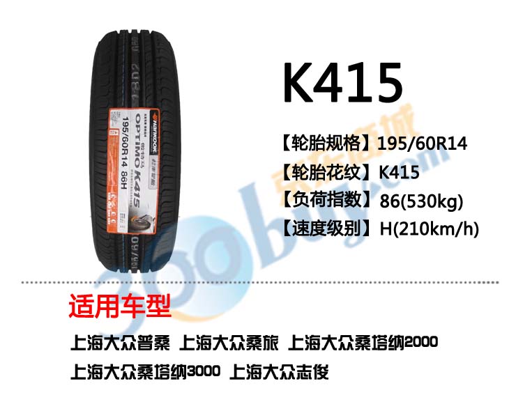 韩泰轮胎 K415 195\/60R14 86H (桑塔纳)