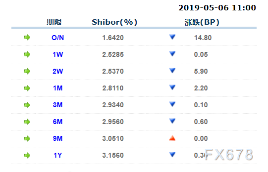 5月6日上海银行间同业拆放利率(Shibor):