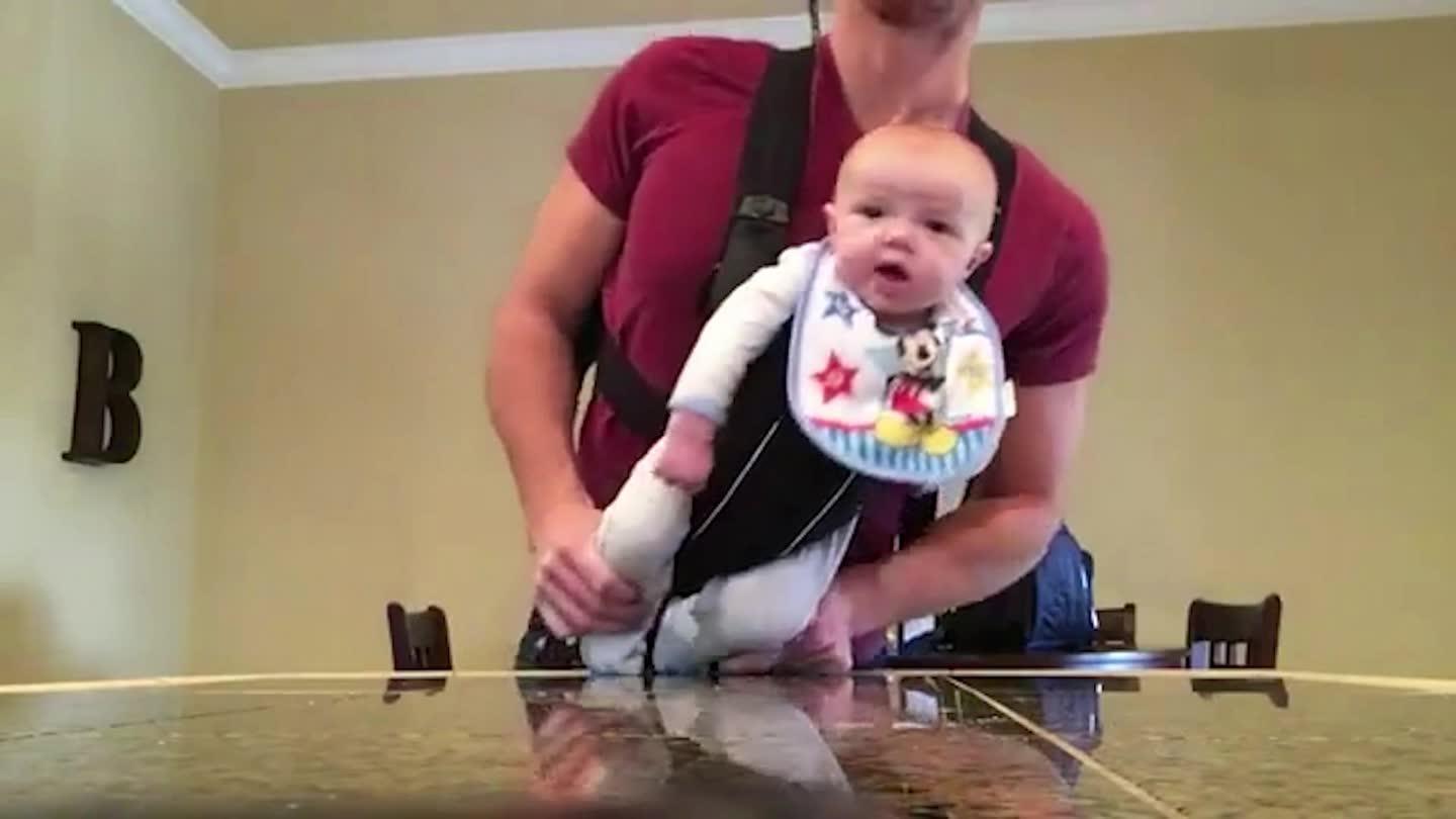 调皮奶爸带宝宝跳MJ太空步 奈何孩子全程