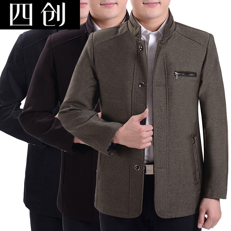 中老年男士夹克衫中年休闲商务外套男装夹克立领爸爸秋装四创男士夹克