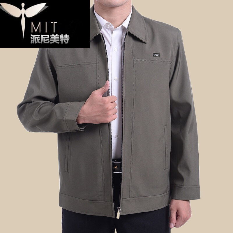 男装上衣中老年人男士夹克衫翻领大码休闲外套爸爸春秋装系扣派尼美特男士