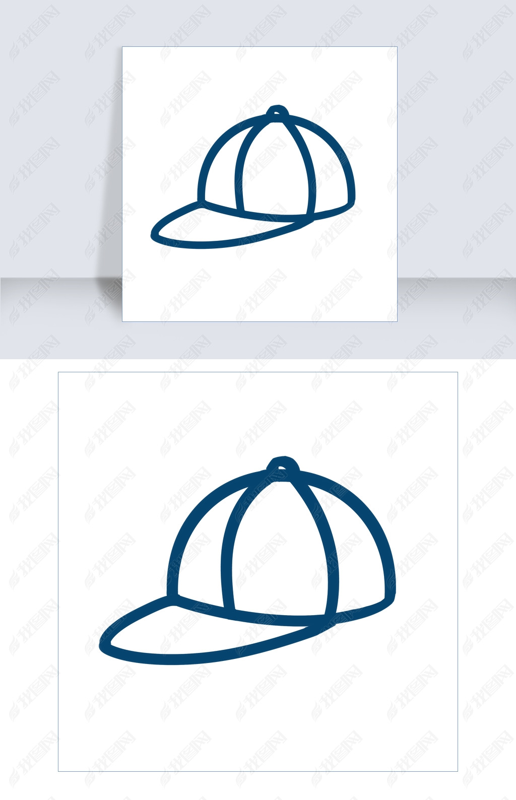 帽子简笔画鸭舌帽蓝白色免扣素材