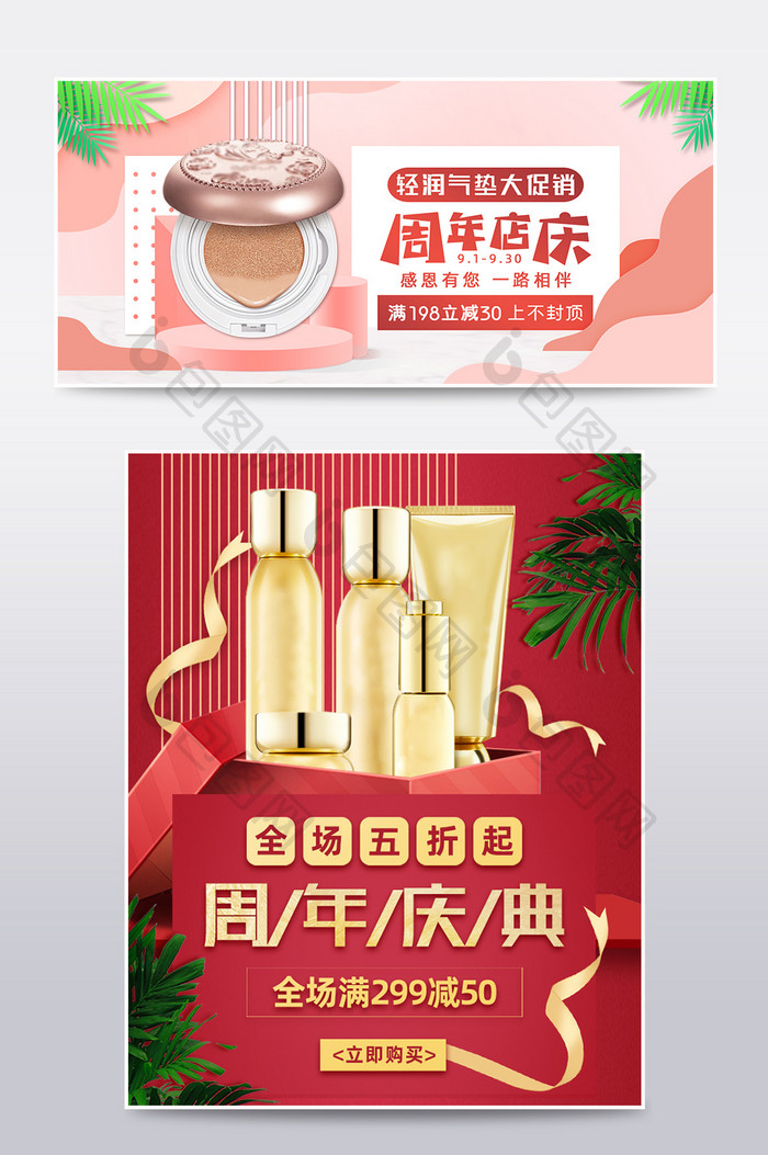 清新简约店铺周年庆化妆品淘宝天猫促销海报