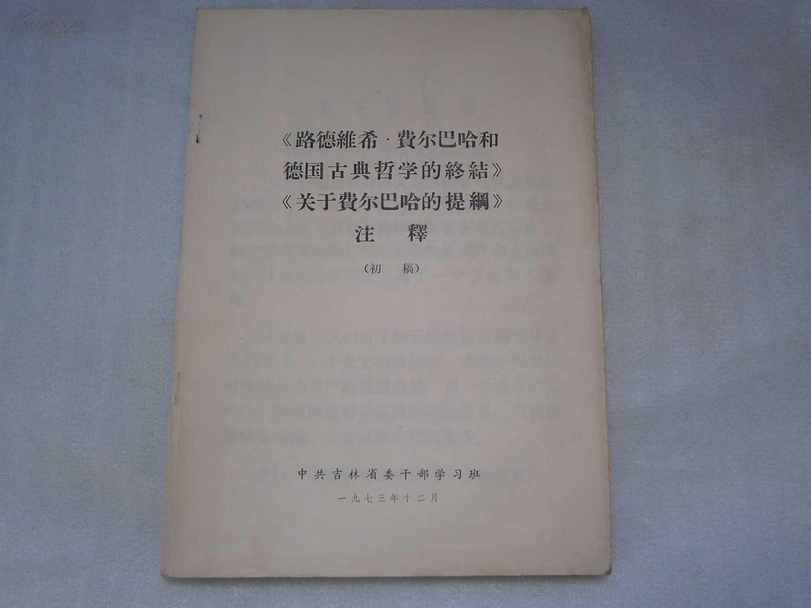 《路德维儿.费尔巴哈和德国古典文学的终结》《关于费尔巴哈的提纲》注释(初稿)油印版