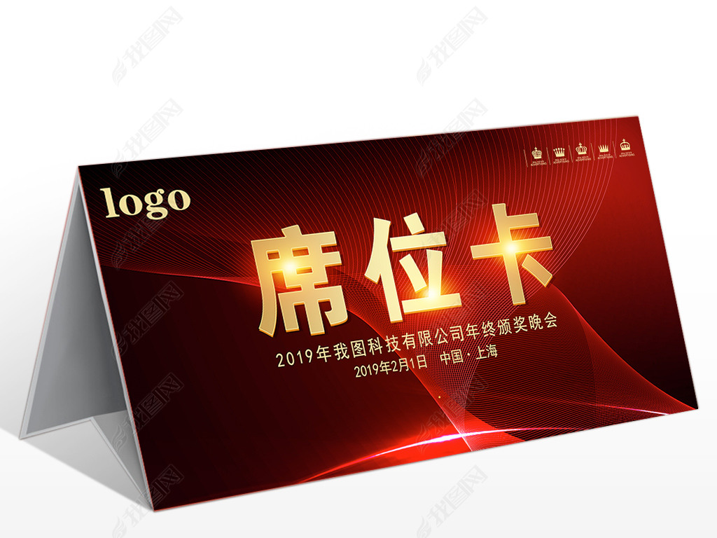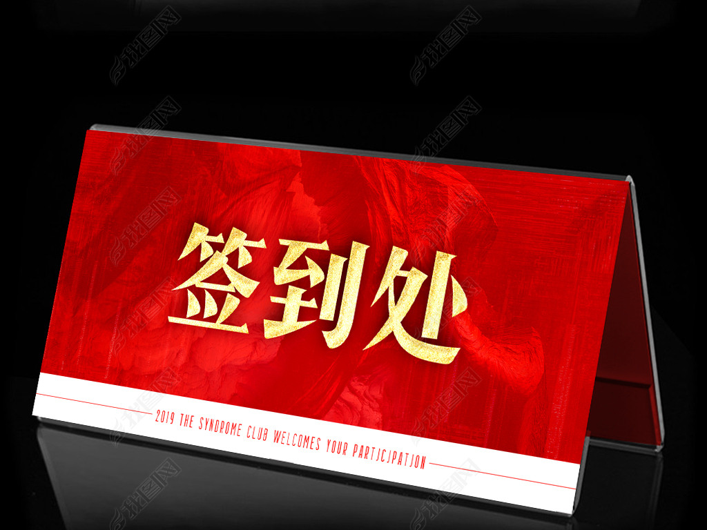 红色背景底纹企业年会签到处桌卡会议台卡台签设计