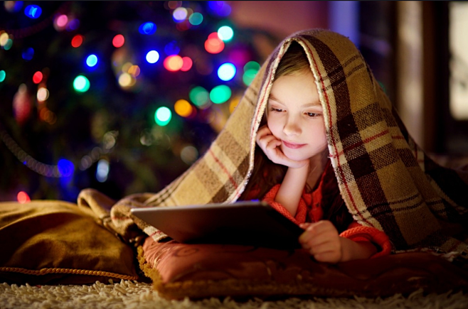 小孩玩手机,看电影